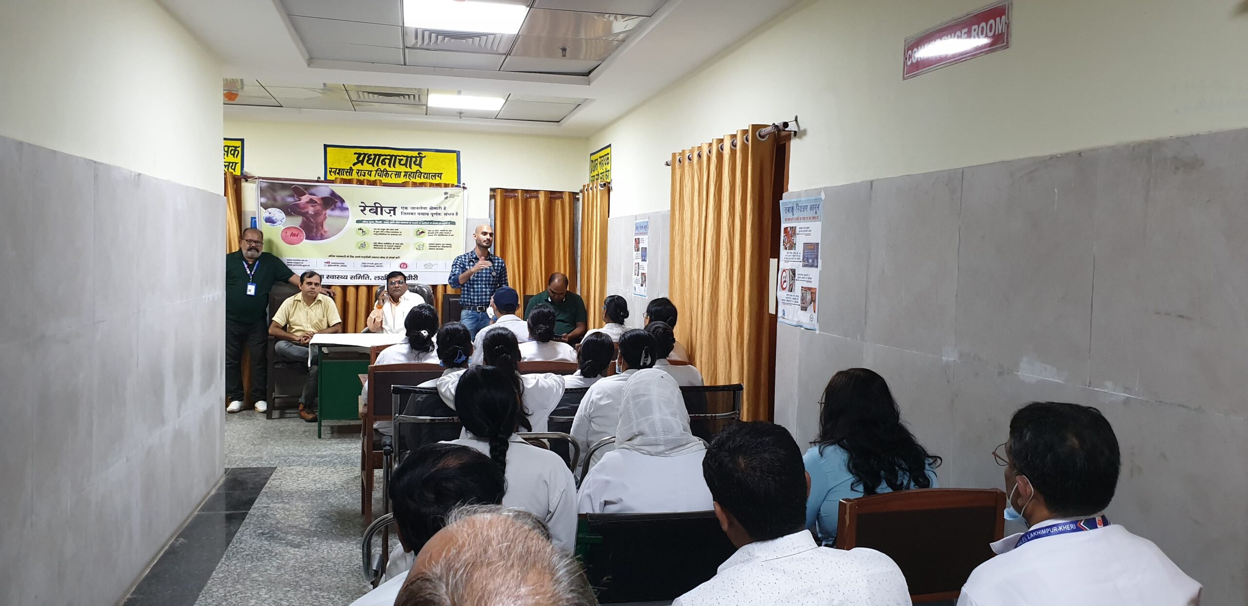 लखीमपुर खीरी: विश्व रेबीज दिवस के अवसर पर जिला चिकित्सालय मोतीपुर ओयल में एक गोष्ठी का आयोजन किया गया। जिसकी अध्यक्षता प्रभारी सीएमएस डॉ एसके मिश्रा ने की। बैठक में रेबीज होने के कारण व उससे बचाव संबंधी विचारों को स्वास्थ्य कर्मियों को बताया गया।